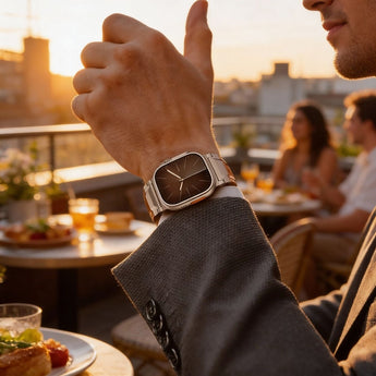 Inspiriert von moderner Architektur und klassischem Uhrmacher-Handwerk, kombiniert unser Armband "Rom" hochwertiges Echtleder mit technischer Raffinesse.